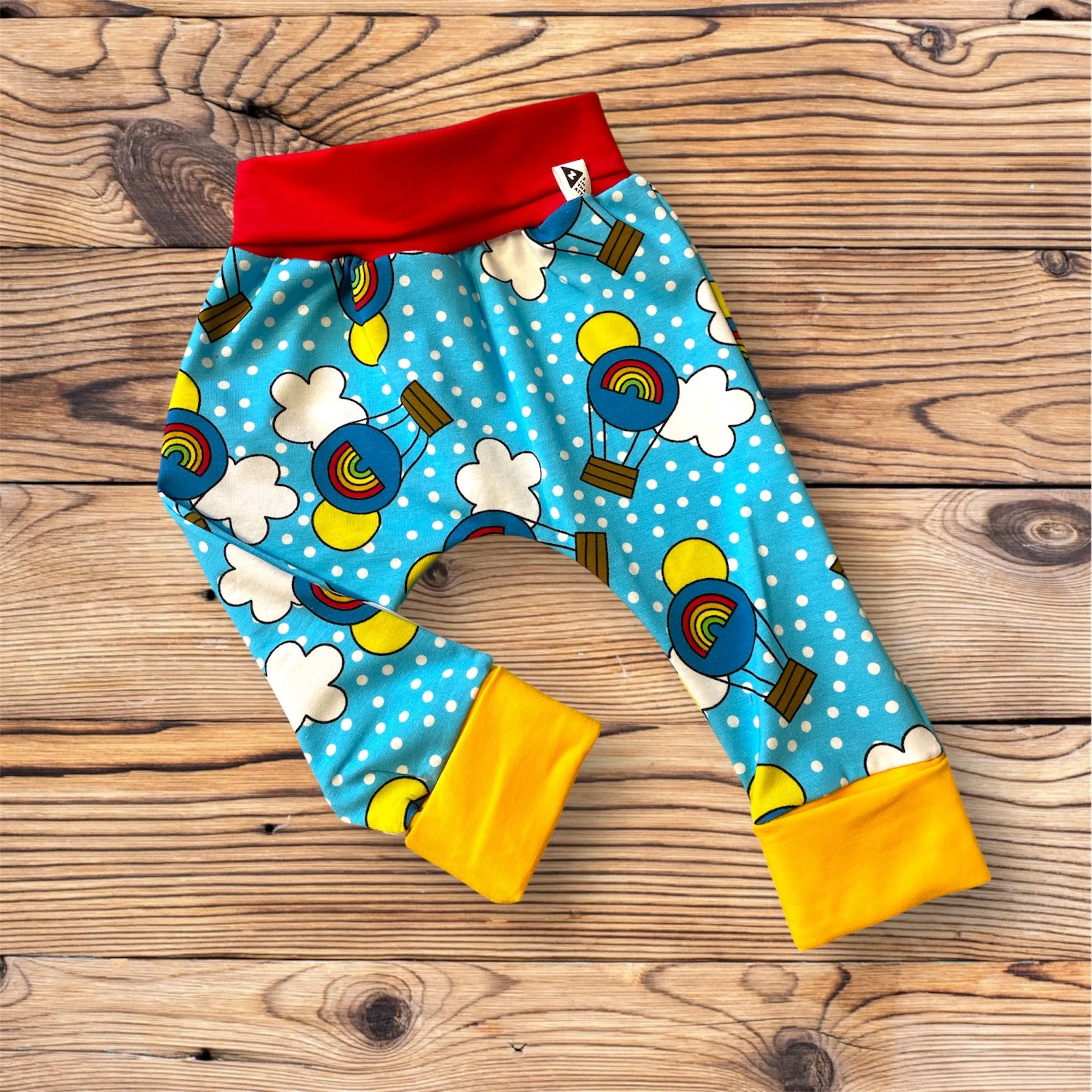 These grow-with-me harem shorts fit for a looong time! Just fold the band at the belly over at first, then unfold them gradually as the months go by.