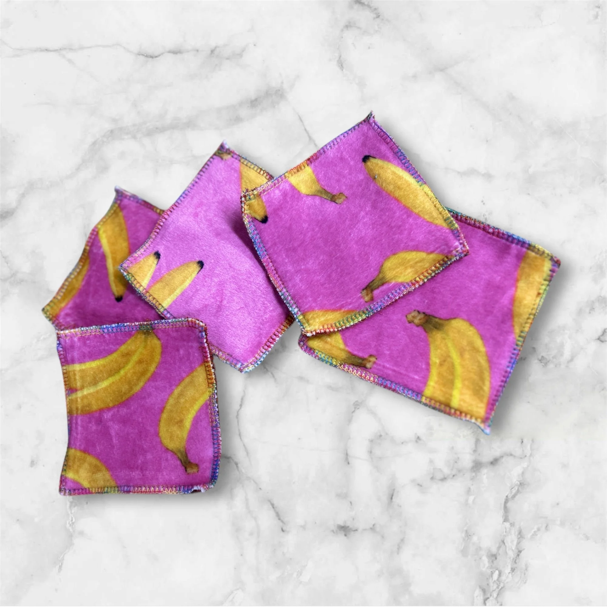 Each pack includes 5 non-paper towels in a mix of random designs, wrapped in simple, plastic-free string for minimal waste.